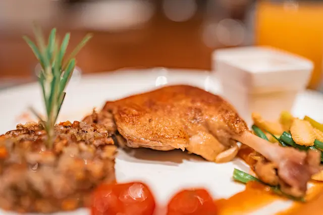 。用慢煮既方式去烹調鴨腿 法式油封鴨腿配橘子香檸汁及野米