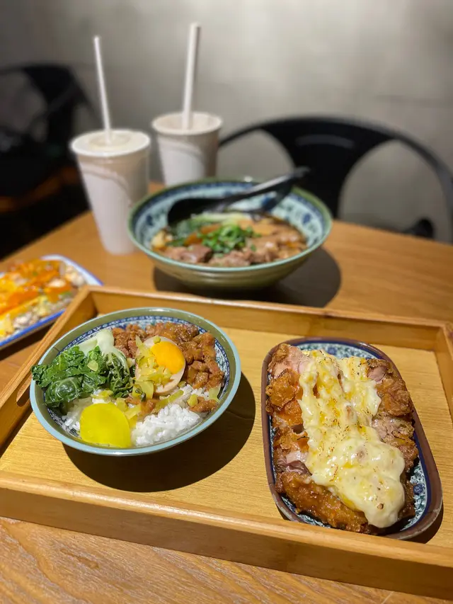 雞扒份量非常之多,又非常厚切!上面鋪滿拉絲芝士,非常邪惡🤤滷肉飯非常入味,滷肉脂肪同肉嘅比例啱啱好,唔會俾人覺得太過肥膩👍🏻仲有半隻滷水蛋同酸蘿蔔做配菜,好豐富👍🏻