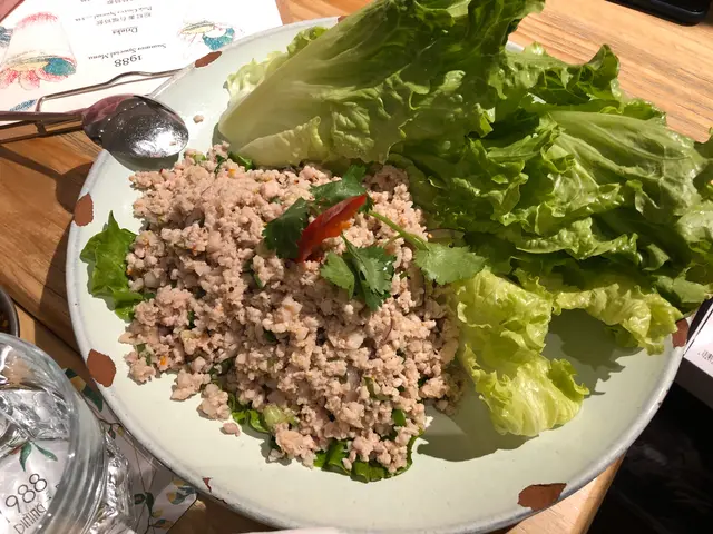 生菜包飯 份量超大 肉碎帶酸 非常開胃 肉碎以瘦肉為主 健康 肉碎不會水旺旺 生菜很脆 新鮮 每片葉也很完整 大小也適中 包到很多肉碎 菜有十塊以上