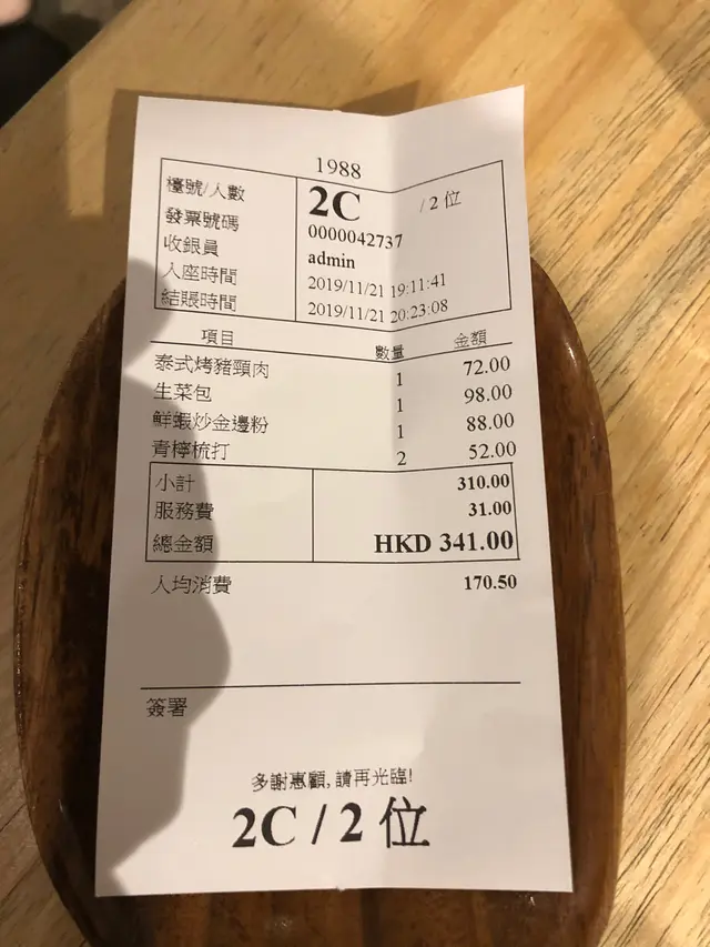 最後每人食左170