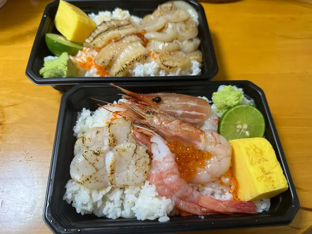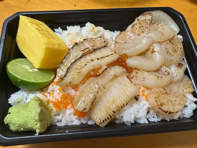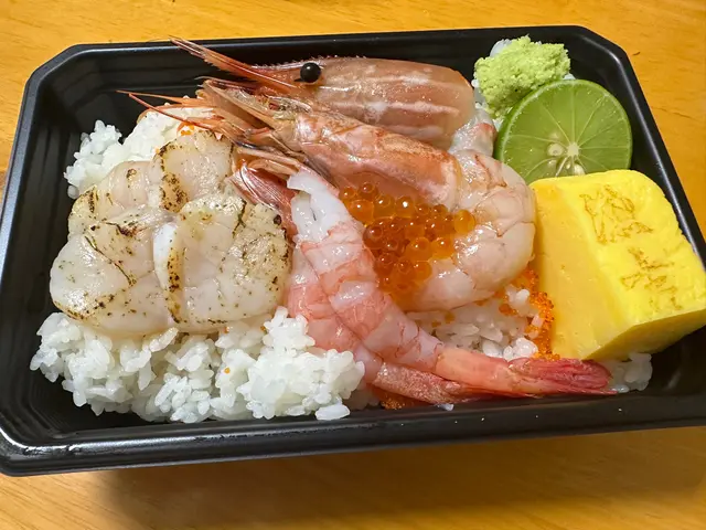 帆立貝同另外個盒應該系一樣,但呢個只有2粒切半的。因為呢盒個重點係蝦上面,有牡丹蝦、赤蝦、甜蝦,每款都好新鮮,簡直食唔停口,如果有得單買刺身應該都幾受歡迎👏🏻每盒飯上面都有一嚿玉子,味道唔錯👅重點要讚吓佢個飯,唔會好似煮到爛哂咁,有平時食壽司嘅咬口,平時唔食飯嘅我都食晒成盒飯😳