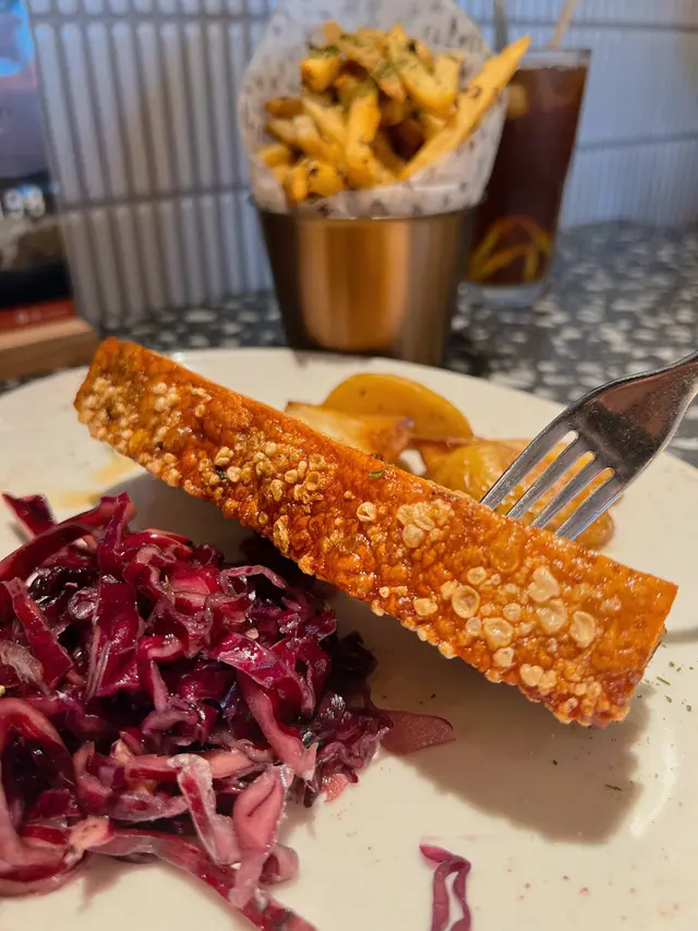 燒豬腩配燒薯仔紅椰菜沙律