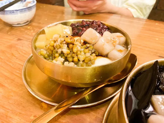 豆腐花口感嫩滑,豆香濃郁,紅豆綠豆煮到軟爛卻不死甜,配上Q彈的芋圓,簡直是絕配~
