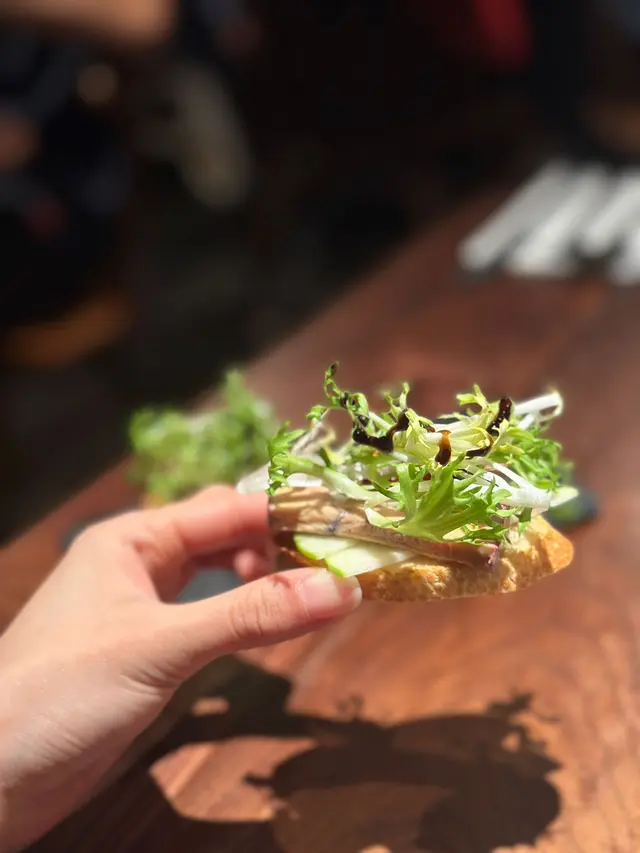 鵝肝伴青蘋果配法包:細滑濃厚鵝肝,配上幾點醋同青蘋果,加埋脆口法包,配合非凡。