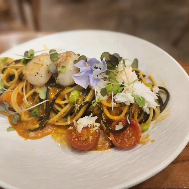 香濃蟹膏雙色意大利麵配手拆松葉蟹刺身帶子:意大利麵唔錯,配左蟹膏,幾香口。有蟹肉,帶子食,但係新鮮貨又大粒。