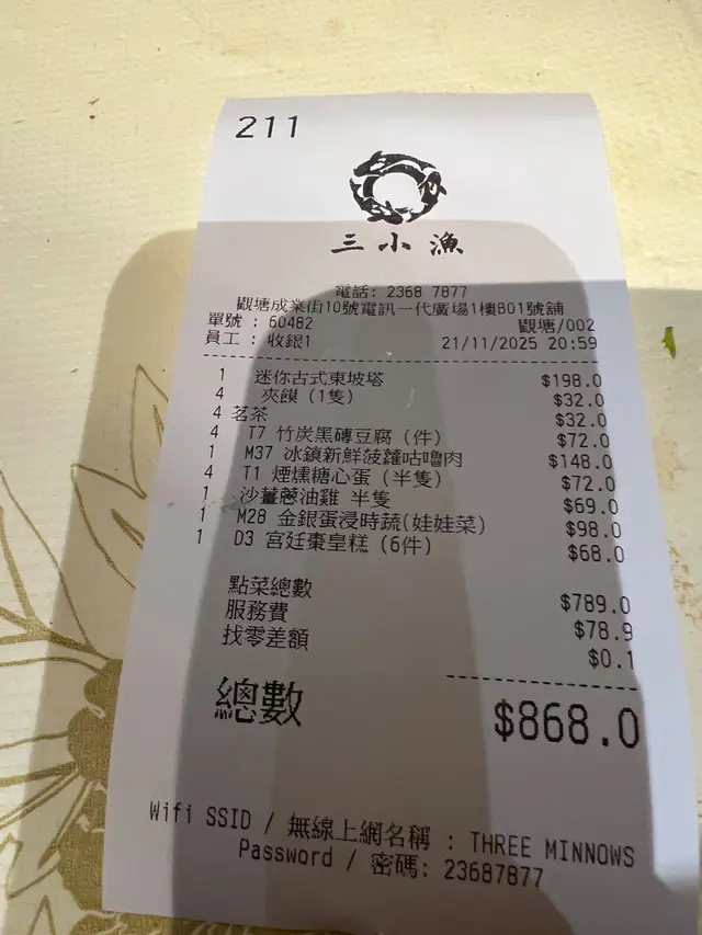 觀塘隱世粵菜 KaitlynTamLevel 42025-11-25 Follow 「三小漁」可算是觀塘隱世粵菜天堂,人氣高企,如果冇訂枱可能都未必有位,今次叫咗幾款招牌,絕對值得介紹!🔸煙燻糖心蛋:蛋黃流心,視覺金黃誘人,開胃的小食。🔸竹炭黑磚豆腐:竹炭外層脆黑,內裡嫩滑入味,配避風塘蒜頭香脆,好味。🔸迷你古法東坡塔:東坡肉層疊肥瘦,慢火燉得軟嫩入味,塔形視覺美,一上枱已經相機食先。🔸冰鎮新鮮菠蘿咕嚕肉:咕嚕肉外脆內嫩,酸甜醬汁適中,冰鎮菠蘿鮮甜多汁,果然是招牌菜。🔸沙薑蔥油雞:每日都有一款特價菜式,今日就係沙薑蔥油雞,雞肉嫩滑鮮香,沙薑蔥油鑊氣十足,抵食!🔸金銀蛋娃娃菜:娃娃菜脆嫩,簡單不失風味!🔸宮廷棗皇糕:棗泥濃郁,糕身鬆軟不黏,不錯!The above review is the personal opinion of a user which does not represent OpenRice's point of view.LikeShare觀塘隱世粵菜 三小漁 https://s.openrice.com/QrKT0JrLV00Report Post Ratings4Taste4Decor4Service4Hygiene4ValueDining MethodDine In