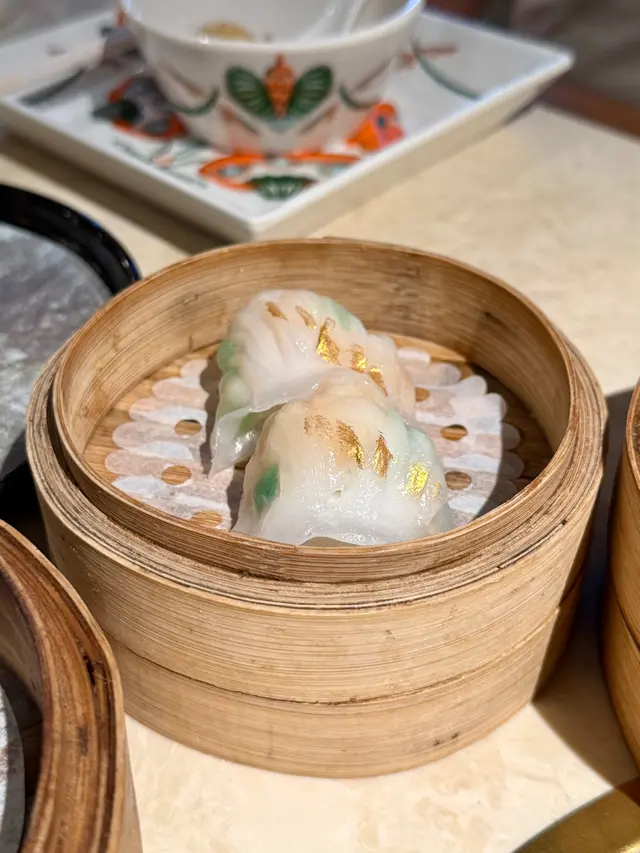 蝦餃皮透出翡翠綠好搶眼✨!咬落爽彈到爆燈,原隻鮮蝦爆汁仲有蟹子卜卜脆,金箔灑面貴氣十足,影相呃like首選📸