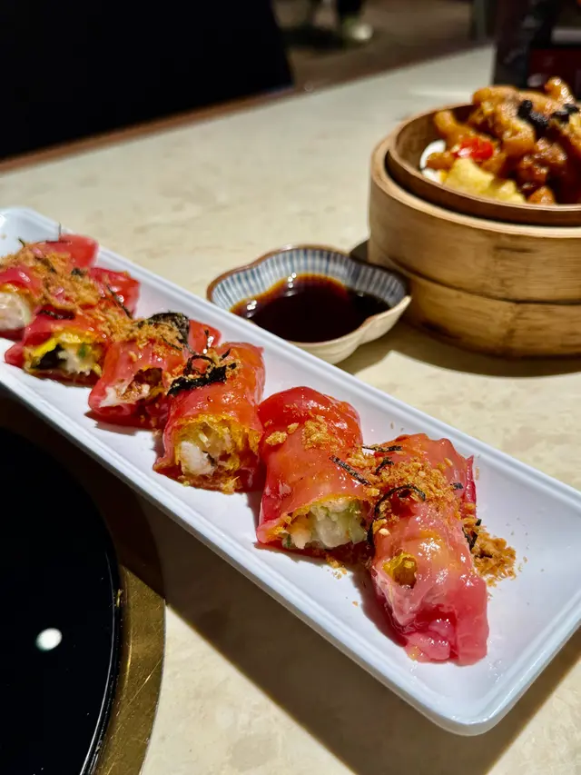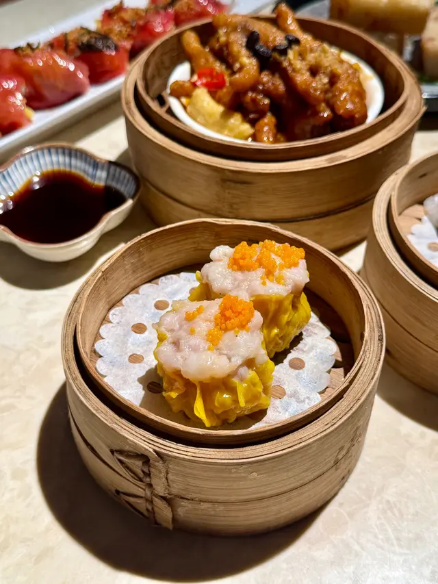 燒賣頂鋪滿鹹香蝦籽,豬肉餡混咗龍蝦肉🦞!口感彈牙唔油膩,蝦籽咬落嗦嗦聲,鮮味直衝喉嚨啊~