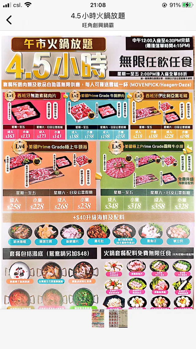 誤導八折,語言偽術+取巧 koyukiyukiLevel 32025-01-05766 views Follow 最近天氣凍,想打邊爐見網上風評ok咪試吓..首先whatsapp果度,係佢哋自己講人頭八折正常黎講,係咪會覺得佢呢個menu計八折?到入座果陣,職員都同我講openrice訂位係人頭八折,但無講係另一個menu先有8折真係好離譜, 收錢果陣先知原來佢仲有另一個menu,果個先係八折,極誤導⋯⋯真係好嬲今次叫左level 5個餐食物方面,都無咩問題店員都好主動拎加湯壺比客人加湯肉類都新鮮既,手打丸子都好食既不過埋單果下真係非常嬲,希望貴公司可以直視問題:(The above review is the personal opinion of a user which does not represent OpenRice's point of view.2Share誤導八折,語言偽術+取巧 鍋霸吃到飽台式養生火鍋 (創興廣場) https://s.openrice.com/QrKT0AgbP00Report Post Ratings2Taste1Decor1Service1Hygiene1ValueDate of Visit2025-01-05Waiting Time5 Minutes (Dine In)Type of MealLunch