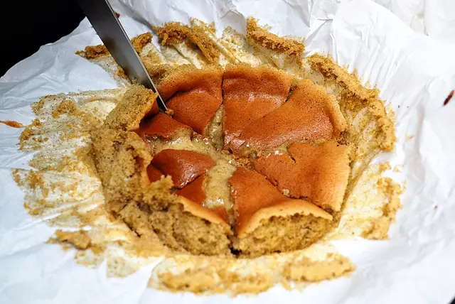 再黎係招牌「半熟蛋糕」,據說半熟蛋糕只需放係雪糕既下格即可 (唔需要放冰格),食之前拎出黎解5-20分鐘,切落應該會有流心效果。