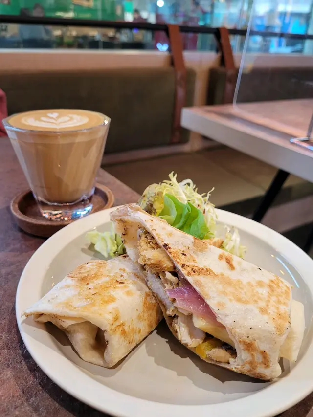墨西哥烤雞胸卷餅, 外層的捲餅翻熱了,內裏的烤雞胸,一吃就係墨西哥的味道,有少少辣味,但又不會很辣。足夠帶起雞胸的鮮味,再配合小小香草的味道,讓這個雞胸變得更為可口。