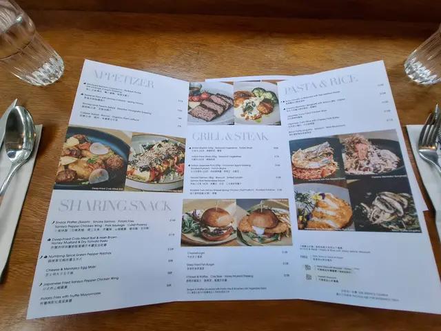 餐牌內有好多唔同款式嘅肉類、意粉、Pizza、漢堡、沙律、小食、甜點、咖啡等,真的很不錯。