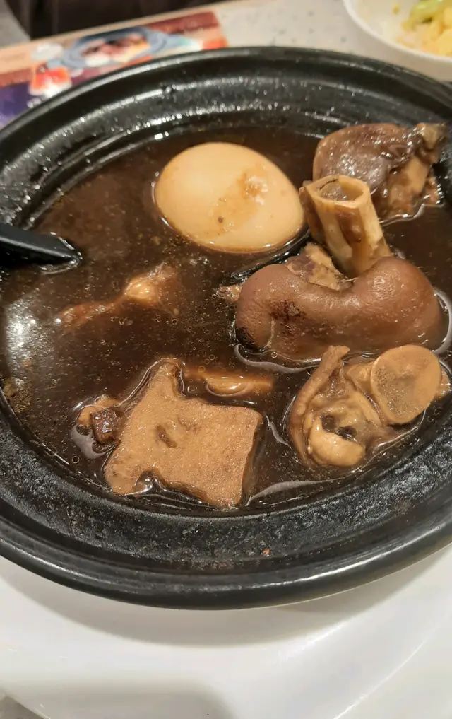 豬手燉煮在肉骨茶中,入口鬆軟而不爛散,帶藥材清香,幾件豬手瞬間被我們吃完呢! 另外還有一只雞蛋,和肉骨茶湯同吃,好味又補身。