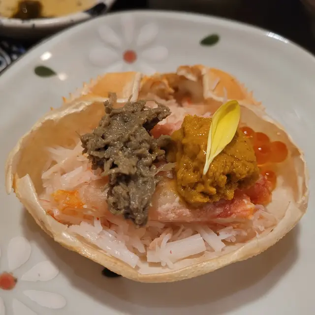 再來就係松葉蟹甲羅,上邊有滿滿的蟹肉之外,仲有蟹膏、海胆同魚子,海胆一D都唔腥,加埋蟹膏的甜味衝擊左我的味蕾,呢個堅正。