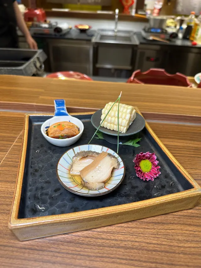 有日本甜粟米,鮟鱇魚肝,磯煮鮑魚等。粟米是生吃的,特別清甜多汁,粟米香味濃郁,鮟鱇魚肝軟稔香甜,鮑魚爽滑鮮甜。