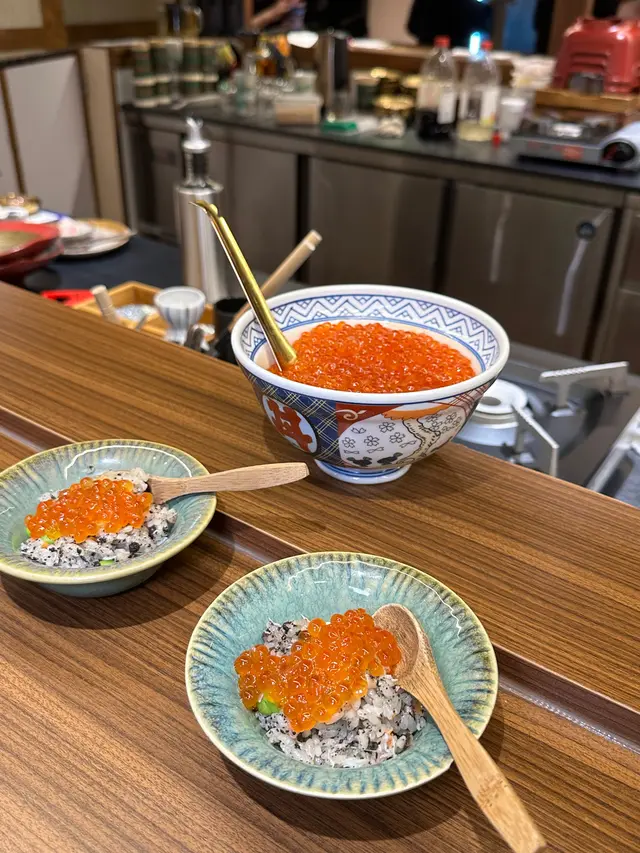 釜飯即叫即煮,熱騰騰,配料多,有蟹肉,枝豆等,和豐富的黑松露醬,香味散發,而且可以有任裝的三文魚籽,十分鮮甜飽满,很满足。
