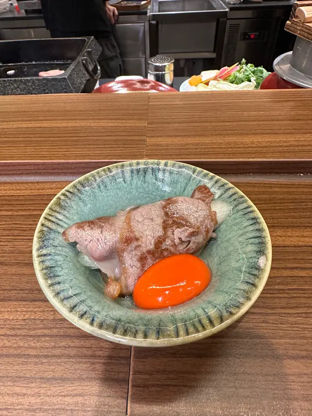 每一片日本和牛的份量都得大塊,肉質嫩滑可口,多汁而香甜,牛肉味濃郁,點上蛋黃一起吃,可以中和一下油膩感。