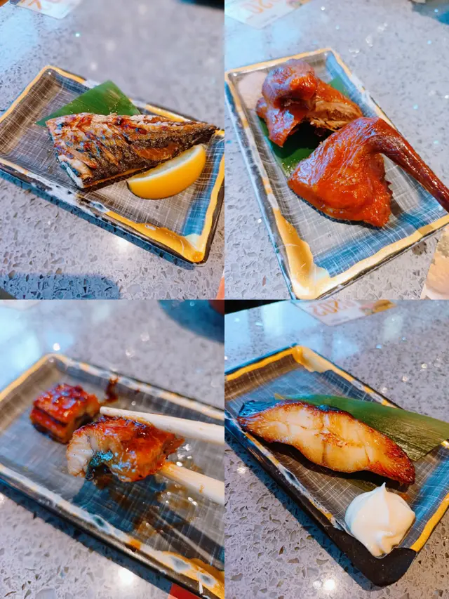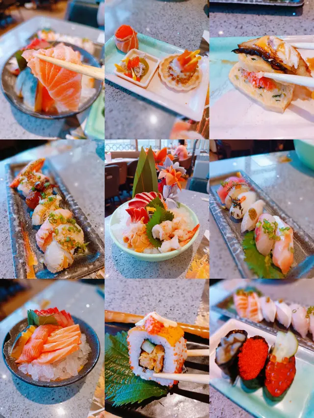魚生壽司,三文魚腩、 海葡萄象拔蚌、 深海池魚王、香蔥吞拿魚、柚子胡椒油甘魚、蒜香牛油帶子和鹽燒三文魚腩等鮮味軟熟。