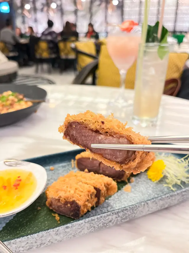 和牛油脂豐富,酥脆炸皮增加口感,香橙柚子醬更是畫龍點睛,中和和牛油脂,令口感更清新消滯。