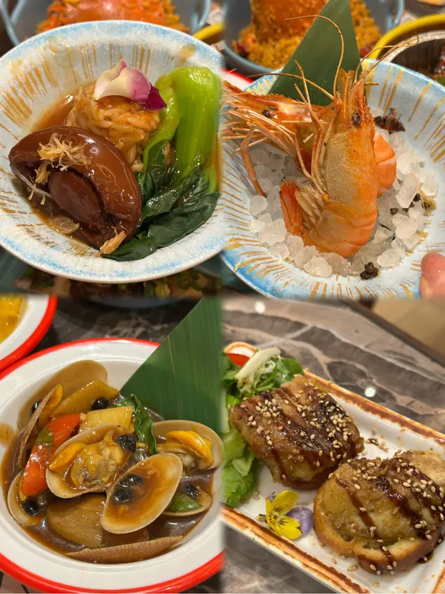 估唔到連蟶子都有🤣蒜香同湯汁滲晒入去,鮮味十足😋避風塘炒蟹香脆惹味🦀大頭蝦好多膏,用最簡單嘅油鹽焗突出鮮味🦐花甲炒得入味,金不換香氣濃郁😝紅燒鮑魚飯相當足料,鮑魚厚身軟糯,飯都吸晒精華醬汁✨