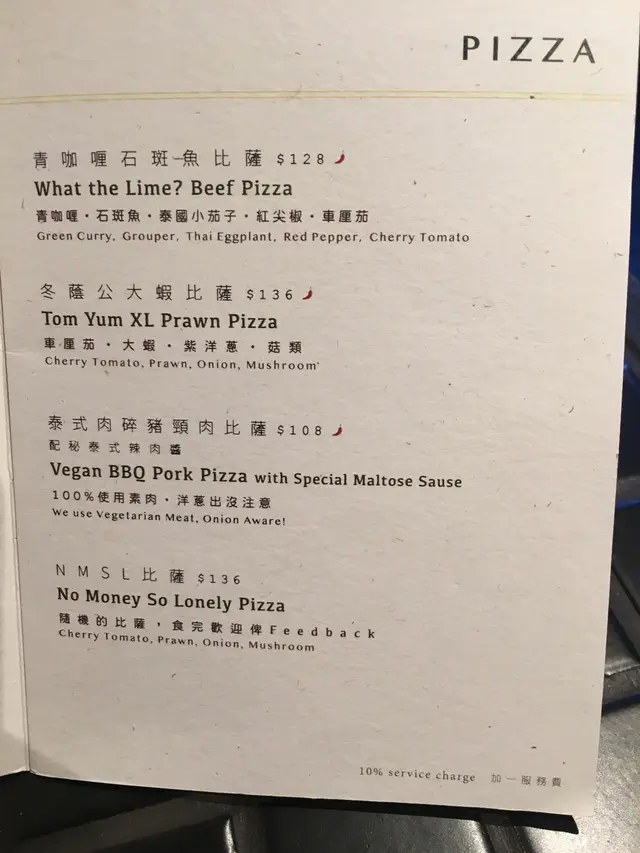 泰式肉碎豬頸肉pizza, 好多肉汁, 香甜, 辣度剛好好開胃, 如果加多啲金不換更perfect👍🏻
