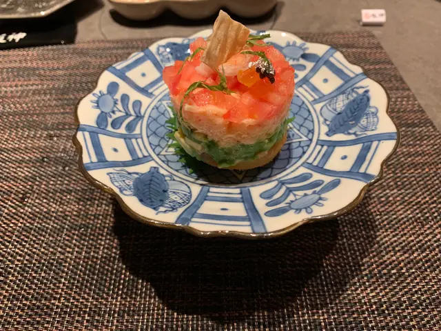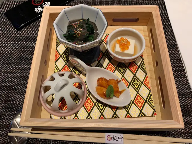 前菜: 芝麻菠菜、魚子豆腐、蒜頭