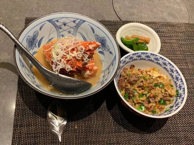 牛肉炒飯(炒飯乾身唔油膩)、龍蝦頭麵豉湯(冇龍蝦味的普通麵豉湯)、漬物