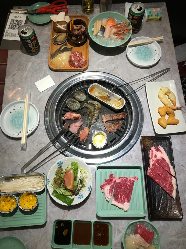 餐廳係入座後,職員就放低了刺身及燒肉拼盤,等大家立即醫肚。刺身有三文魚、帶子、希靈魚,同埋大蝦刺身。所有的刺身都幾新鮮,可以再encore。