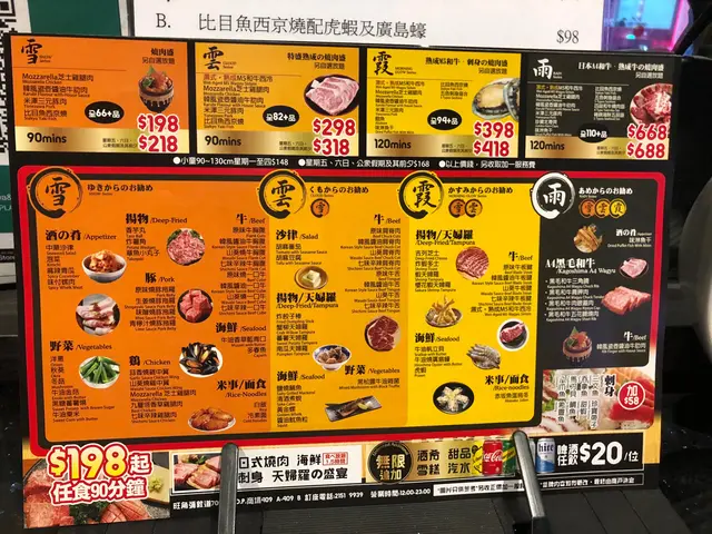 餐廳的任食餐點有4個等級,而我今次就揀$398的霞。買一送一後,每位等於$199/位,認真抵食。