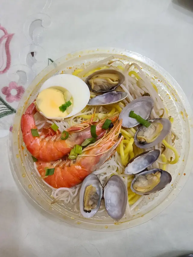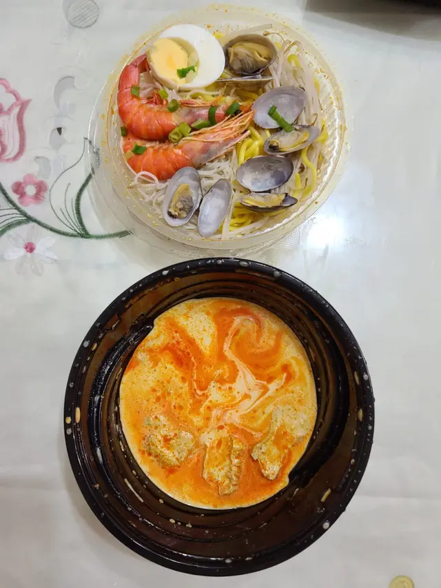 海鮮喇沙面的海鮮配料唔少,有蝦又有蜆,佢的湯底喇沙味濃,而且頗辣下,椰奶味亦夠香,不錯😌