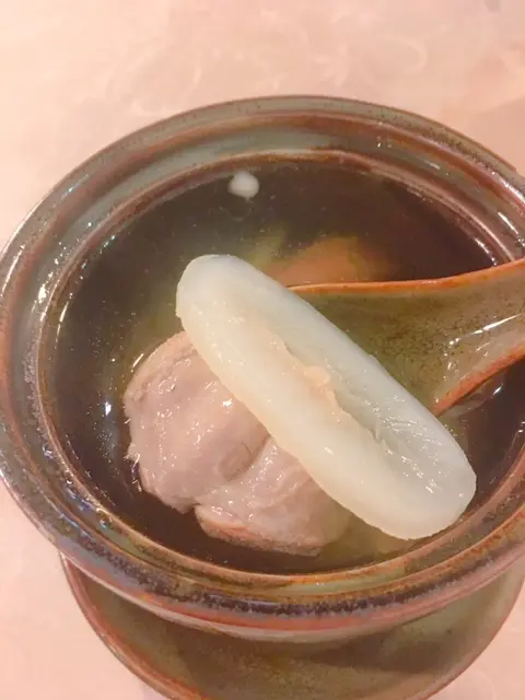 今晚有2款 : 原盅燉川貝陳皮海底椰魚肉湯, 簡直岩晒呢輪係咁咳嘅我, 原盅滿滿湯料, 味道清中帶甜, 雖則有川貝, 但一D都唔苦, 正呀!