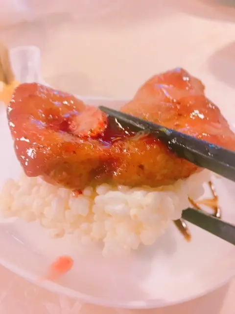士多啤梨豚肉伴草莓 - 厚切豚肉以米通墊底, 再淋上士多啤梨醬汁, 酸酸甜甜可中和豚肉膩感, 有心思!