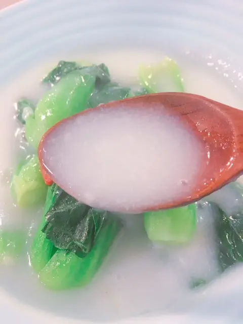 米王有機時令蔬菜 - 個米王湯底無論口感及味道都好似飲緊忌廉湯咁滑口, 時令蔬菜為小棠菜苗, 食落又嫩又甜!