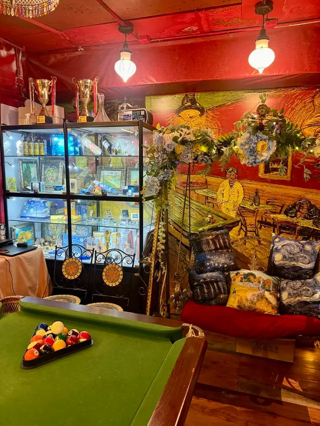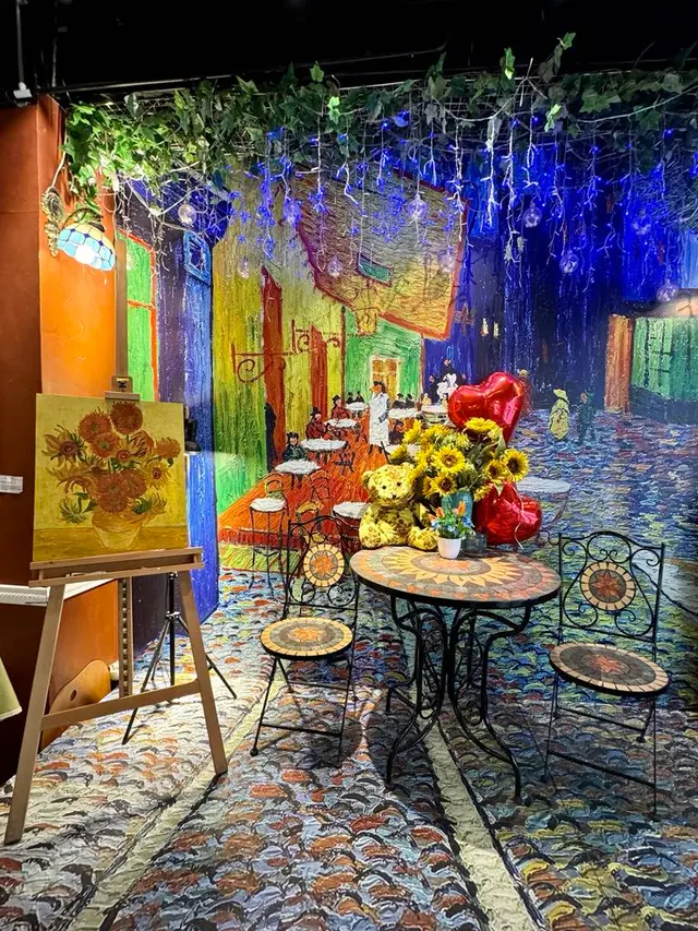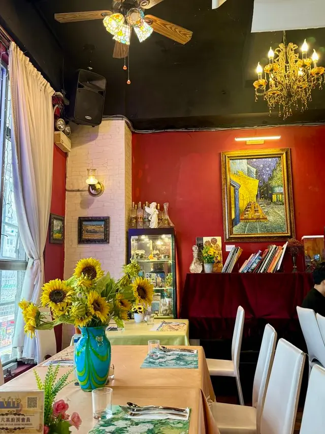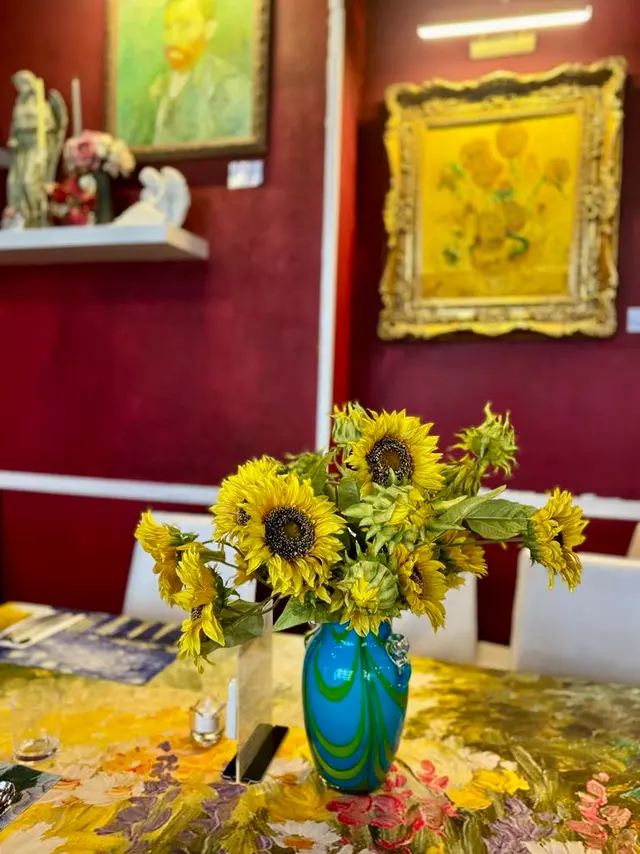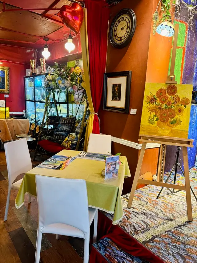 📌上到2樓入到餐廳,好似去左梵高畫廊咁,牆上掛滿了一幅幅梵高畫作🖼️,而餐廳的環境都根據畫作內容精心怖置。《夜間咖啡館》、《向日葵》、《星夜》等等都係梵高的著名畫作,中間擺放了《夜間咖啡館》的桌球枱,枱上有《向日葵》的向日葵花,各款畫作的餐枱墊,成間畫廊都色彩繽紛,五顏六色,食餐飯好似去咗藝術館咁,令人賞心悅目。