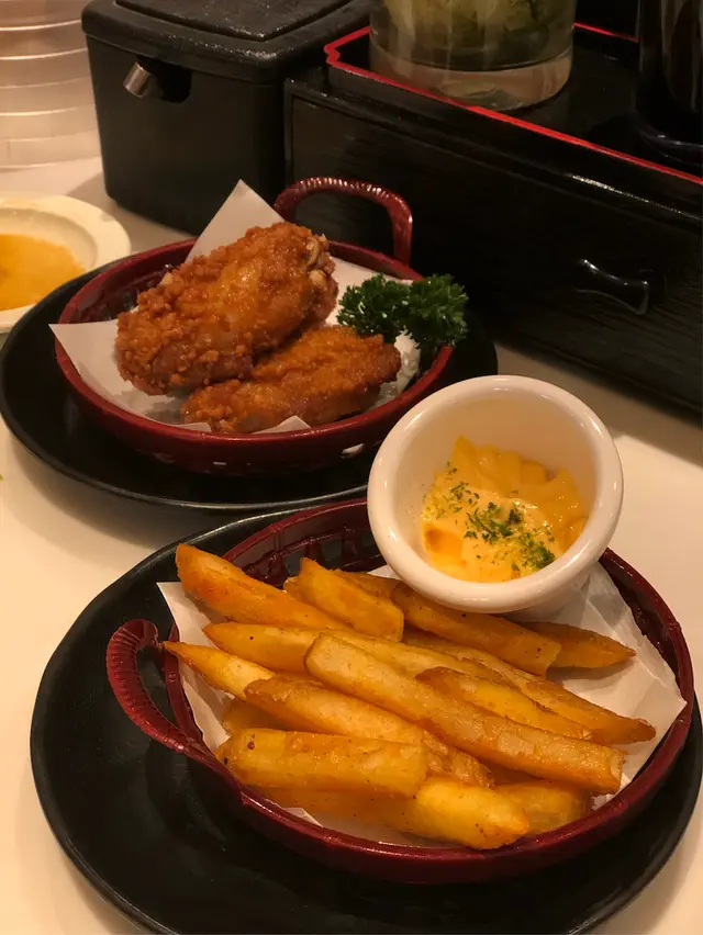 小食叫咗兩款:芝士薯條、炸雞翼