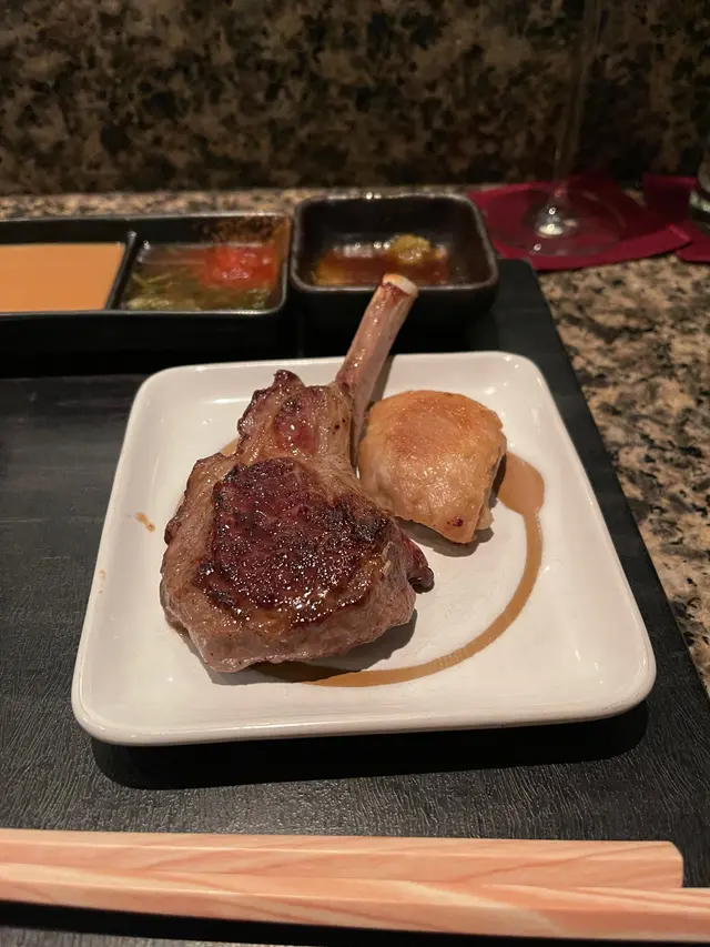 煎羊架加雞,羊架都煎得比較熟,唔腍,仲要佢冇比刀叉你,預你用對木筷子,好“難去”食:好難咬,一般般。