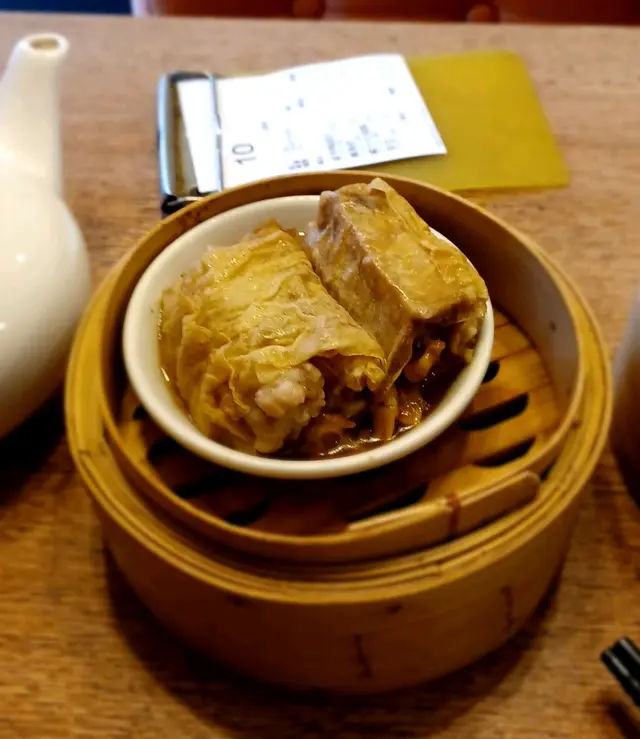 酒樓更貼心,不時主動幫客加水。食客除街坊外也有不少區外客。佢地既點心相信係自家廚房製造非工場交來,味道不只新鲜好味,而且性價比仲極高。果日因為得自己一個人去所以只食咗三樣嘢:叉燒腸,鸭腳扎同素翅灌湯餃。通常鸭腳扎入面舊芋頭我覺得係下欄從來唔會食的,但佢呢度整果件好靚,食落好粉,完全癲覆我一值以來對鸭脚扎入面舊芋頭的不良感觀。灌湯餃好足料,湯又夠熱。隔離枱位婆婆埋單時猛讚d點心好味,特別係咸魚肉餅飯舊咸魚喎。佢地既點心的確唔錯,但我更欣賞佢既茶竟然好滑,好似用山水沖既咁。收六蚊位茶錢真係超值。以後上環買嘢一定再去幫襯。