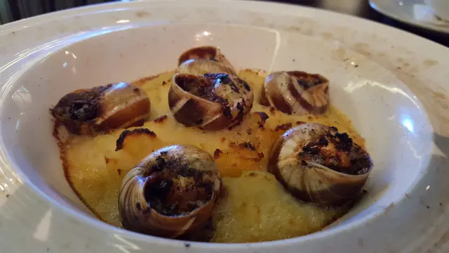 蝸牛味道不錯,好入味,同樣偏鹹。蝸牛唯一的缺點只係要用牙籤拎蝸牛肉食。薯蓉可以同蝸牛互補不足,薯蓉主要係香味夠,但就冇咩鹹味。另外值得一讚的是,他們家的薯蓉,外表與平日食的無異,實際上大有差別。