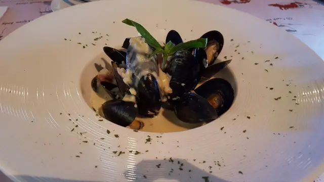 第二道- 白酒忌廉煮法國藍青口配法包