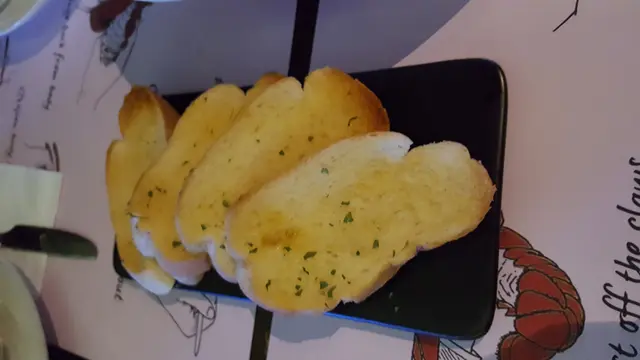 首先,法包的麵包邊係脆到可以有麵包碎。然而,裡面蒜蓉的麵包位置係好軟熟。一塊法包厚度剛好,唔會太大,女士們可以食得優雅。蒜蓉味唔太強,牛油味依然重。