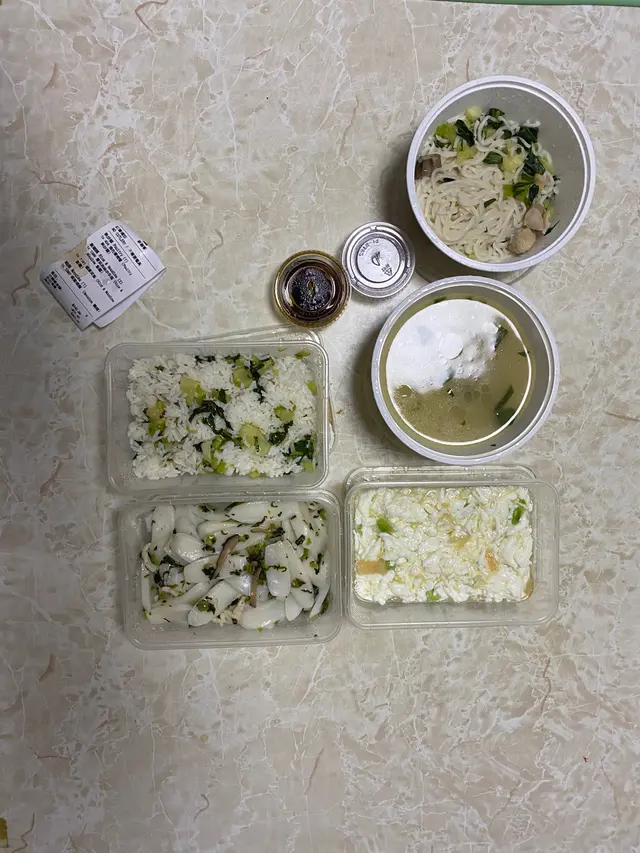 先叫個燴面俾阿仔食, 根住就賽磅蟹, 菜飯同雪菜肉絲年糕