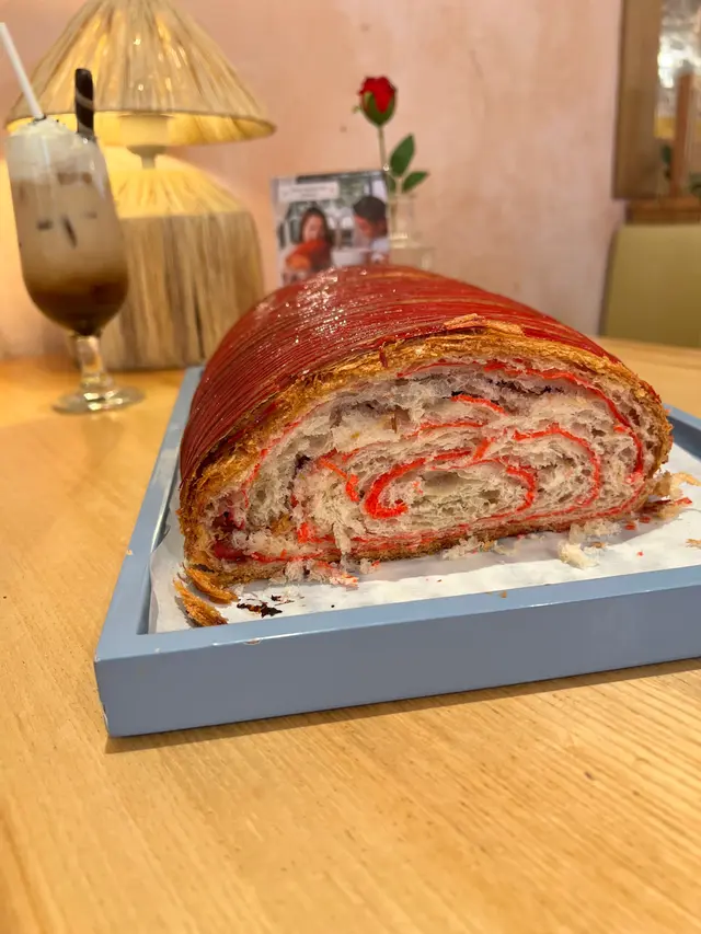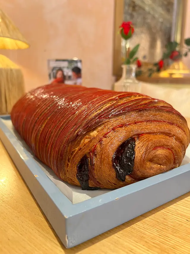 打卡一流,巨型大大個酥皮點心,真係好大個!外表脆卜卜、內裡一卷卷,酥皮層次好靚,內裡底層有酸甜紅桑子果醬,非常開胃。