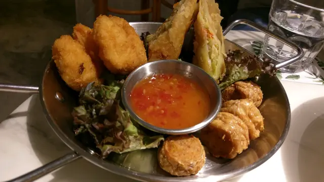 好豐富嘅小食拼盤,份量好大,新鮮炸起,有春卷,蝦餅,魚餅等等,食到唔停口。