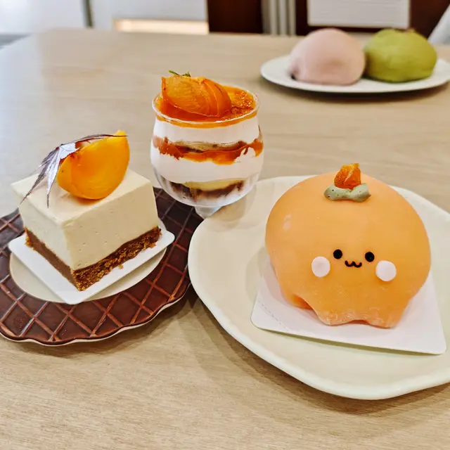 外觀超級可愛,令人不忍心吃掉!軟糯的外皮包裹著香甜的柿子餡,吃一口就愛上,強烈推介!