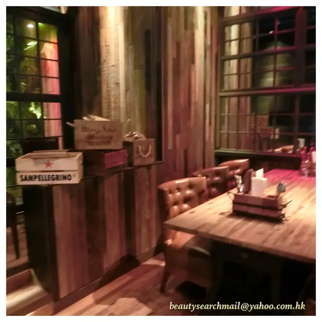 這份神秘,延伸至店內,地方寬敞,以木系為主調,無論用料還是用色,都以木為主,木製的餐桌,深色的皮椅,裝潢充滿懷舊風格,配合柔和昏暗的燈光,悠閒舒適,令人心情放鬆。店內更以舒適寬敞的卡位為主,在這裡用餐,實在非常舒適。
