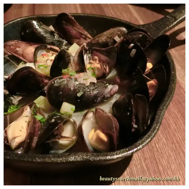 再來「法式白酒煮藍青口」,白酒香味已經滲透到青口之中,每口青口都充滿白酒味,酒精不會太濃,反而令海鮮鮮味提昇。而青口份量多,肉厚,亦頗大隻,可以說是啖啖肉的。肉質嫩滑、肥美又彈牙,真是完全吃不停呀!