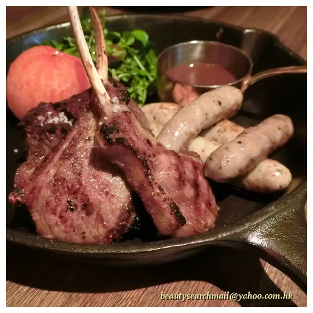 一盆 Platter 中載有羊架、牛排,還有腸仔,這「 Mixed Grilled Meat Platter」實在非常豐富,食肉獸定必大愛。羊架烤得香口,唯太熟了,令肉質太實;牛排非常厚身,成數約為6-7成,呈現嫩紅肉色,肉質細嫩,帶有點點嚼勁;腸仔 小篇就較少點選,亦沒有研究!