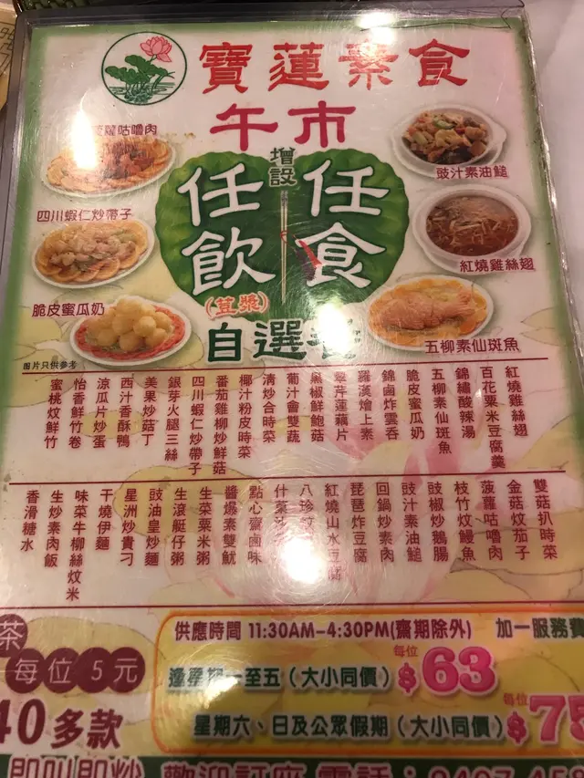 超值任食 linglingladyLevel 22017-04-30590 views Follow 超值任食回鍋肉,涼瓜煎回鍋肉太咸後面的涼瓜炒疍夠香五柳仙班, 紅燒翅五柳仙班硬過化石,紅燒翅可以齋滷味齋滷味符合預期,齋鴨腎最好食!1連同加一及茶介,埋單每人$75無投訴啦!單點一款都要60幾蚊依家有咁多野揀任飲任食都係$75好平喇!The above review is the personal opinion of a user which does not represent OpenRice's point of view.1Share超值任食 寶蓮素食 https://s.openrice.com/QrKT0Q5mg00Report Post Ratings2Taste3Decor3Service4Hygiene4ValueDining MethodDine In