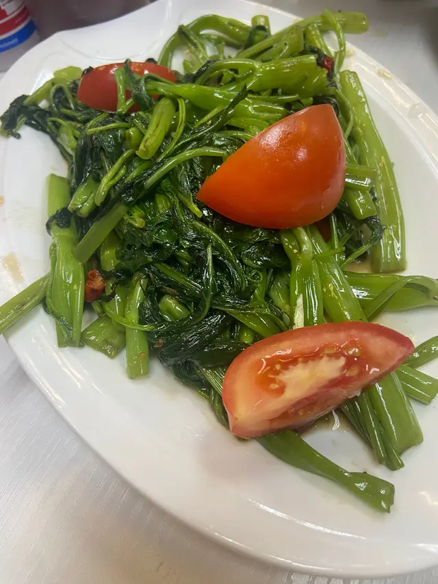 夏天食通菜真係一流,一碟勁多!唔算好辣,好惹味!仲附送番茄,可以解下辣。