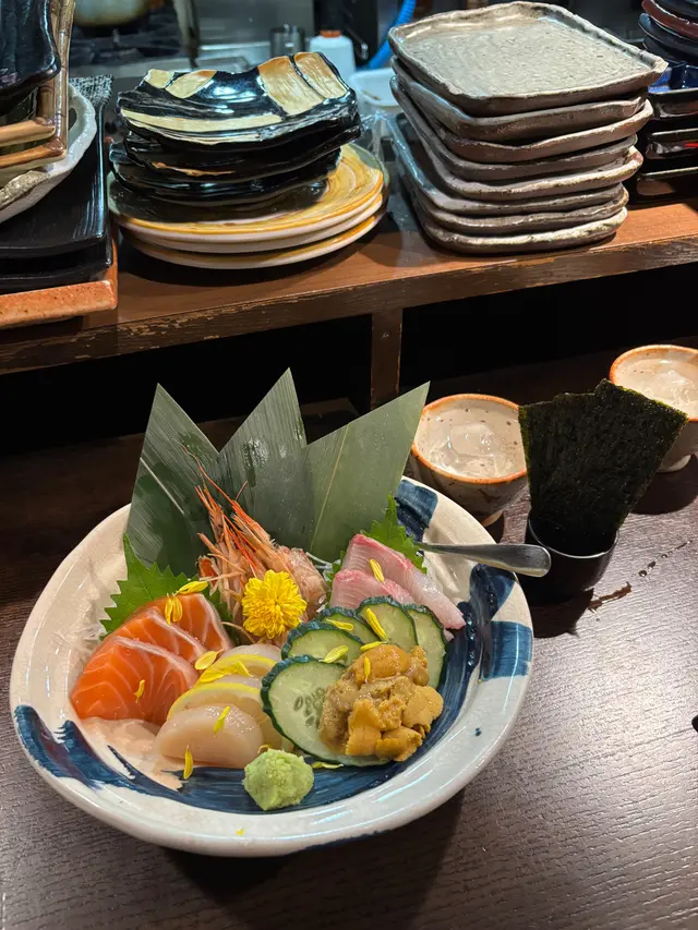 刺身拼盤有海膽,大甜蝦,油甘魚三文魚及帶子,新鮮而且溫度控制好,大片又爽口,非常抵食